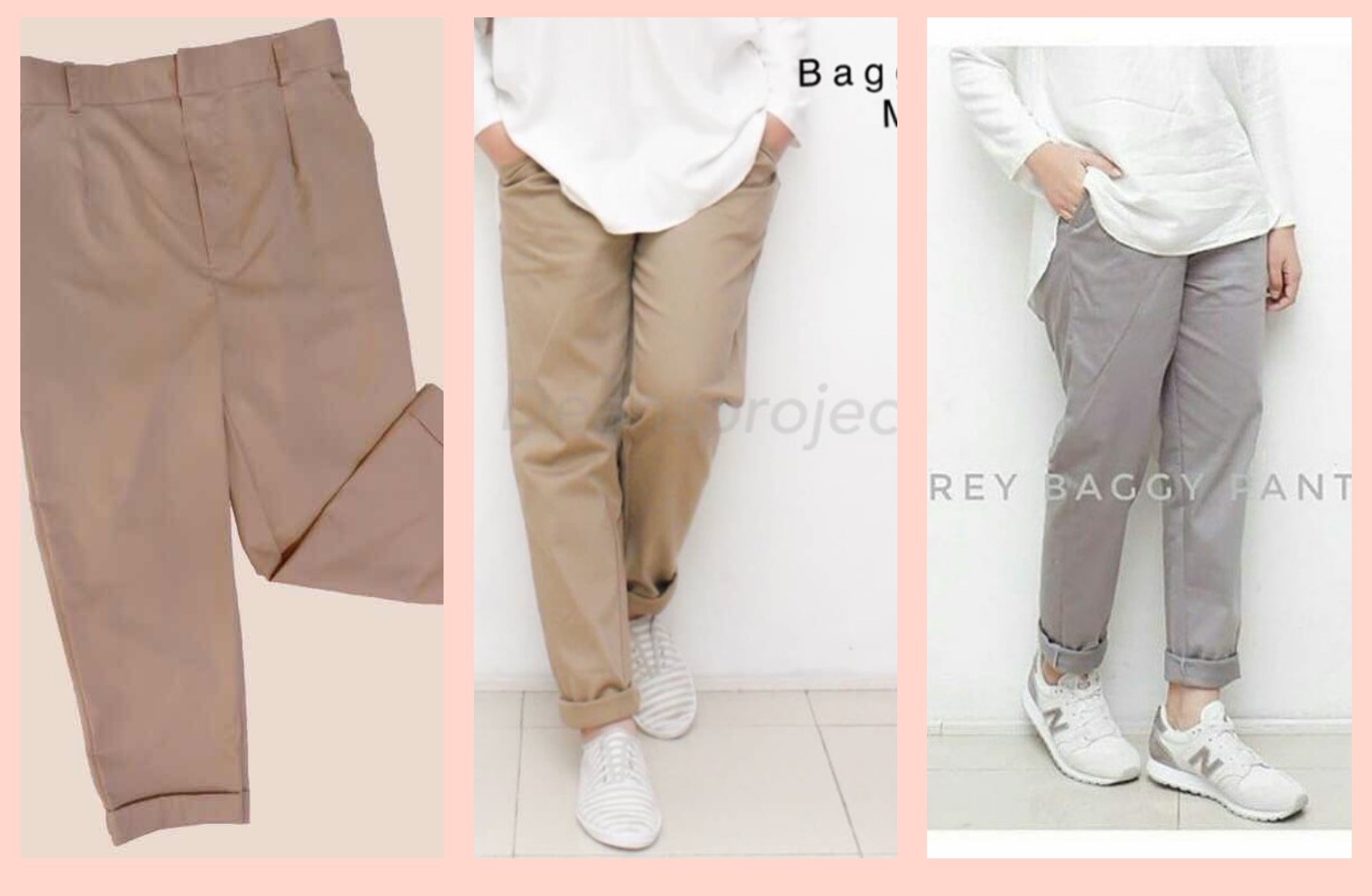 Baggy pants memiliki siluet lebar dan agak loose di bagian pinggul. Karena itu, baggy pants adalah pilihan yang tepat bagi kita yang memiliki bentuk tubuh persegi panjang dan si skinny leg. Untuk tampilan yang lebih casual, padukan baggy pants dengan knit cropped top dan oxford shoes. Atau padukan dengan basic tee berwarna putih polos, namun pilih baggy pants yang lebih unik, misalnya yang berbahan leather. Sementara kalau kita berani tampil beda, coba deh, bermain dengan gaya yang lebih rebel dan edgy seperti menjodohkan layering collar shirt dan checkered shirt bersama baggy pants.
